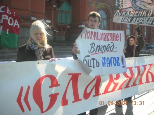 1 апреля Движение "Лукашенко 2008" совместно с движением "Славянка" провели пикет у Исторического музея в поддержку Белоруссии и Союзного государства. На пикете были озвучены требования немедленного прекращения кампании по дискредитации белорусского президента, развязанной российскими олигархическими СМИ и скорейшего принятия конституционного акта Союзного государства. Основными лозунгами акции стали: “Беларусь- русский народ с тобой!”, “Русские за Лукашенко!”, “Слава Белой Руси!”, “Требуем референдума!”, “Дружба дороже газа!”.